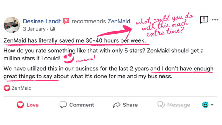 ZenMaid takes 90% of the work out of managing your bookings, clients and employees.